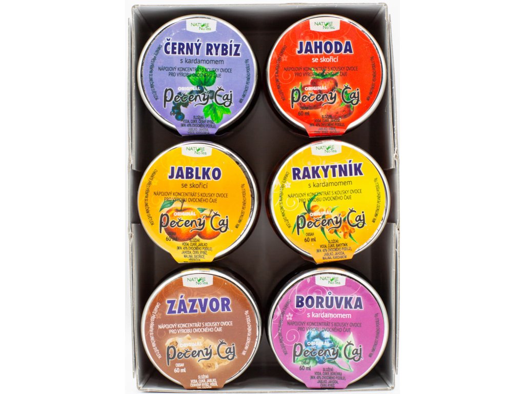 Balení 6 pečených čajů - Černý rybíz, Jahoda, Jablko, Rakytník, Zázvor, Borůvka